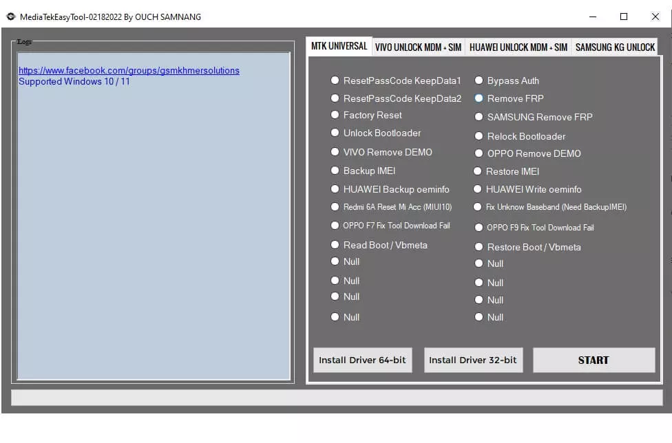 MediaTek Easy Tool is a free simple latest MTK Erase FRP tool for Windows computers that helps users to Erase FRP, Reset Passcode, Factory Reset, Auth Bypass, Bootloader Unlock, from any MTK powered device easily. It is the latest MTK Universal program developed by Ouch SamNang provides you the plenty of options & methods to unlock or repair any MTK powered phone including Xiaomi, Oppo, Realme, Vivo, Samsung, Tecno, Meizu, Infinix, etc.